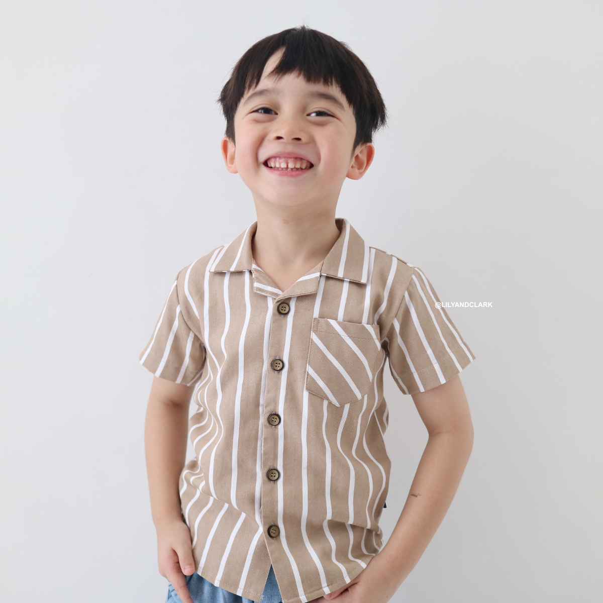 Lily And Clark Kemeja Pendek Anak Salur Warna Khaki - KP19-KHAKI